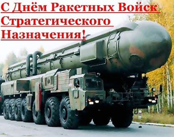 Дорогие ветераны- ракетчики, ваши семьи! Поздравляем вас с днем Ракетных войск стратегического назначения! Желаем вам ядерного настроения, стратегических целей, позитивного настроя, космического здоровья и активной жизни!