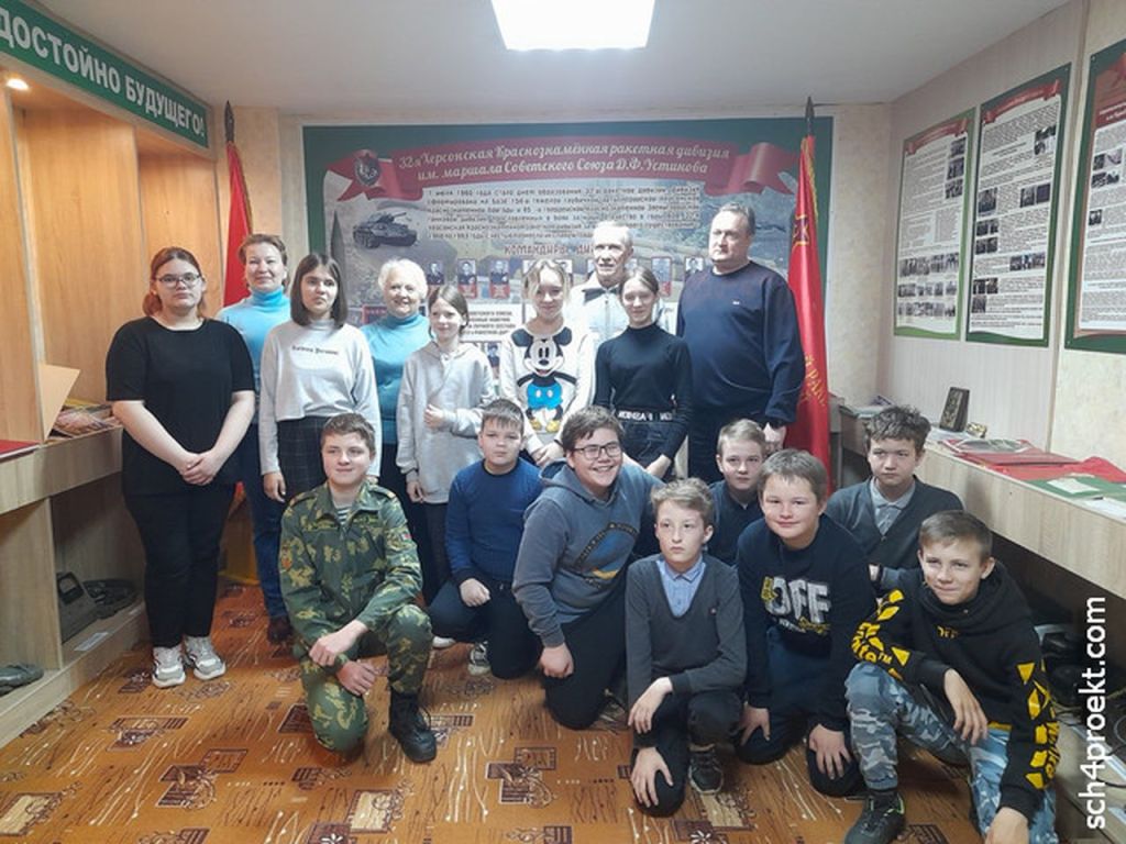 22 апреля в музее истории военного 5-го городка (на базе СШ № 4) для учащихся 6-7 классов проведён Урок Мужества «Настоящее, которое помнит прошлое, достойно будущего». Были приглашены Копосов Юрий Сергеевич, председатель первичной ветеранской организации 32 ракетной дивизии, Копосов Денис Юрьевич, командир 304 гвардейского Краснознамённого ракетного полка, г. Юрья Кировской области. В этот же день гостями музея стали дочери и внучка начальника военного оркестра 32-й ракетной дивизии Федоровича Владимира Павловича.